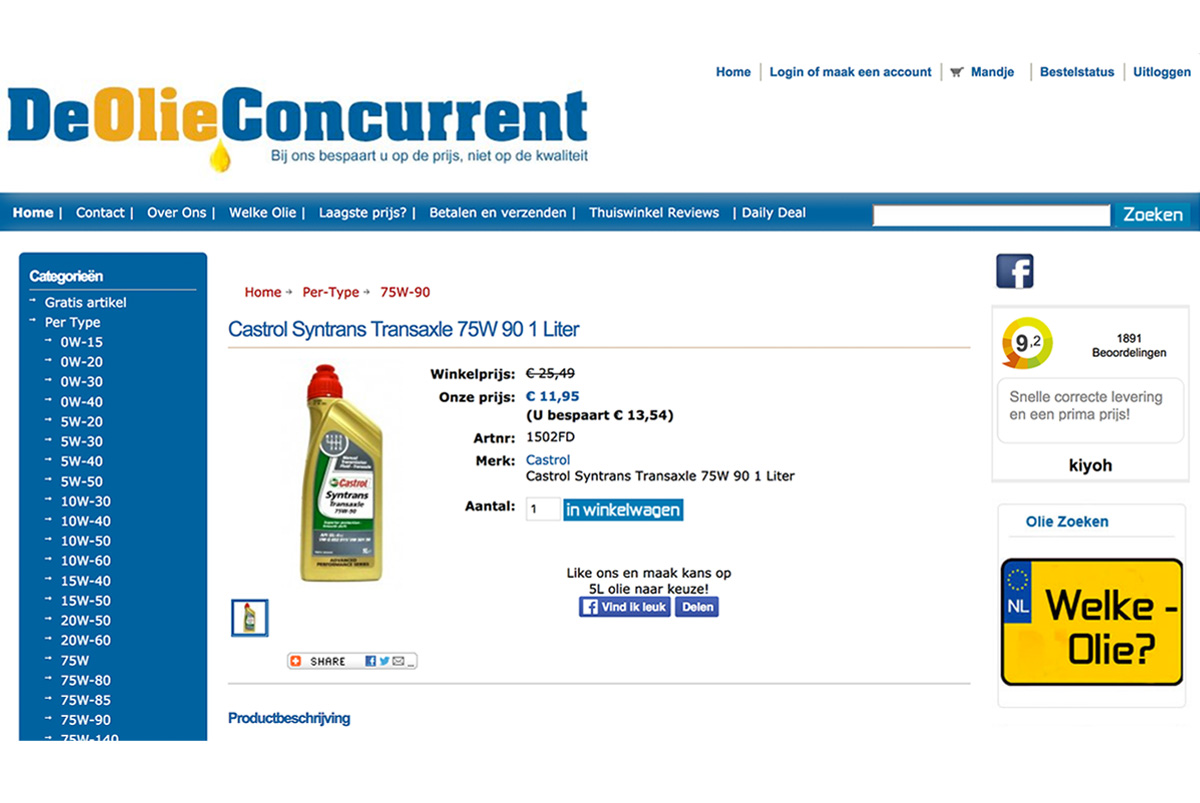 Vanuit De Olie Concurrent B.V. was de opdracht om aanpassingen door te voeren op de backend van de webshop.